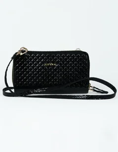 Elementy skórzane znajdują się także wewnątrz produktu. Krój jest prosty, a dzięki usztywnieniu zachowuje swoją formę. Pikowana torebka portfel Produkt wykonany z lakierowanej, błyszczącej skóry. Na skórze został wytłoczony mały wzór imitujący pikowanie. Pomysł na prezent dla kobiety Produkt torebka-portfel zapakowany w czarne, matowe pudełko prezentowe.