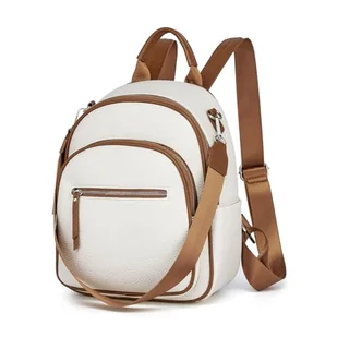 Miss Lulu Mały plecak damski, plecaki szkolne, ze skóry PU, mały wodoszczelny, plecak miejski, torebka mini, elegancka torba na czas wolny, do szkoły, na podróż, do pracy, beżowy, jeden rozmiar