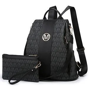 MKP COLLECTION Moda damska plecak torebka z wieloma kieszeniami plecak antykradzieżowy podróżna torba na ramię torebka zestaw 2 szt, 0-czarny, 11.8"L x 5.5"W x 14"H, Nowoczesny