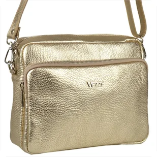 Skórzana damska torebka listonoszka pojemna złota dwukomorowa Vera Pelle