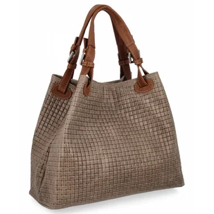 Szukasz modnej i praktycznej torebki, która sprawdzi się na co dzień i doda charakteru każdej stylizacji? Ta torebka skórzana typu shopper bag marki Vittoria Gotti to połączenie stylu, funkcjonalności i jakości, stworzona z myślą o najbardziej wymagających klientkach. Shopperka została wykonana z wytrzymałej, naturalnej skóry, wyróżnia się oryginalną, przeplataną fakturą, która przyciąga wzrok i nadaje całości oryginalnego, ale jednocześnie ponadczasowego wyglądu. Jej zgrabny kształt sprawia, że świetnie się układa, a przy tym pomieści wszystko, co chcesz mieć zawsze pod ręką. Wnętrze torebki zostało zaprojektowane z myślą o wygodzie – znajdziesz w nim dwie praktyczne kieszenie oraz przegrodę, która pomaga utrzymać porządek. Shopperkę możesz nosić w na ramieniu lub na przez ramię dzięki dołączonemu paskowi, dopasowując sposób noszenia do swoich potrzeb. To świetna torebka na co dzień: stylowa, wytrzymała i bardzo praktyczna. Jeśli jesteś fanką stonowanych kolorów, to ziemista torebka sprawdzi się doskonale!