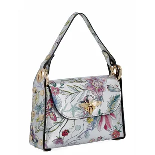 Elegancka torebka skórzana renomowanej marki Vittoria Gotti to idealny wybór dla kobiet, które cenią sobie połączenie klasyki z wyrazistym stylem. Wykonana z wysokiej jakości naturalnej skóry, przyciąga uwagę pięknym kwiatowym wzorem oraz złotymi okuciami, które dodają jej luksusowego charakteru. To doskonała propozycja dla miłośniczek wyjątkowych dodatków, które chcą wyróżnić się z tłumu i podkreślić swój indywidualny styl. Torebka zamykana jest na klapę z efektownym zapięciem w kształcie pszczoły, co stanowi oryginalny, dekoracyjny akcent. Dzięki wygodnej rączce i dodatkowemu paskowi (nie ma regulacji) możesz nosić ją zarówno w dłoni, jak i na ramieniu, dopasowując do swoich preferencji. To model idealny na spotkania, wyjścia do miasta czy eleganckie wieczory, kiedy potrzebujesz kompaktowej, ale stylowej torebki, która pomieści najważniejsze drobiazgi. Włoska precyzja wykonania i wyjątkowy design sprawiają, że ta torebka to inwestycja w ponadczasową modę i jakość. Srebrna torebka skórzana doda Twoim strojom blasku, zamów!