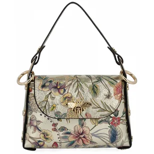 Elegancka torebka skórzana renomowanej marki Vittoria Gotti to idealny wybór dla kobiet, które cenią sobie połączenie klasyki z wyrazistym stylem. Wykonana z wysokiej jakości naturalnej skóry, przyciąga uwagę pięknym kwiatowym wzorem oraz złotymi okuciami, które dodają jej luksusowego charakteru. To doskonała propozycja dla miłośniczek wyjątkowych dodatków, które chcą wyróżnić się z tłumu i podkreślić swój indywidualny styl. Torebka zamykana jest na klapę z efektownym zapięciem w kształcie pszczoły, co stanowi oryginalny, dekoracyjny akcent. Dzięki wygodnej rączce i dodatkowemu paskowi (nie ma regulacji) możesz nosić ją zarówno w dłoni, jak i na ramieniu, dopasowując do swoich preferencji. To model idealny na spotkania, wyjścia do miasta czy eleganckie wieczory, kiedy potrzebujesz kompaktowej, ale stylowej torebki, która pomieści najważniejsze drobiazgi. Włoska precyzja wykonania i wyjątkowy design sprawiają, że ta torebka to inwestycja w ponadczasową modę i jakość. Złota torebka skórzana doda Twoim strojom blasku, zamów!