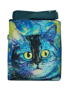 Autorska torba z usztywnionego eko zamszu, zapinana na zamek. Przód z weluru tapicerskiego. Pasek regulowany. Tył w korze paska (niebieski) Torba trzyma fason. Wewnątrz dwie kieszenie - jedna na za ...