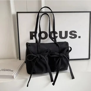 Nylonowa torebka na ramię z kokardami - Czarny