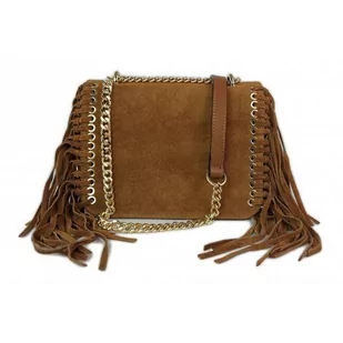 Piękna Duża Listonoszka A5 Frędzle ,Złoto ,Dzety ,Łańcuch Skóra Zamsz Z Dollaro Camel Vpz88C