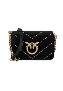 Pinko Love Click Mini Aksamit+ Vit, Torba damska, Z99Q_Czarno-Antique Gold, Z99q_czarno-antyczne złoto