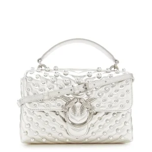 Pinko Love Lady Puff Mini CL Metal Sheep Frędzle + szpilki + cyrkonie, torebka damska, ZZFO_Srebrny-Old Silver, Zzfo_srebrny-stary srebrny