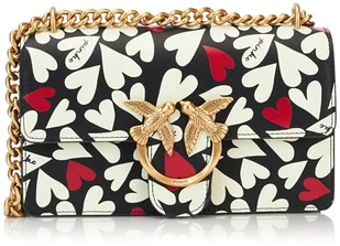 Pinko Love One Mini DC Cielęcina Jedwabne Serca Drukowanie Torba Damska, ZF6Q_Czarny/Biały/Czerwony-Antique Gold, Zf6q_czarny/biały/czerwony-antyczne złoto