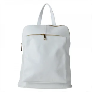 Plecak skórzany biały A4 lekki Indeks: 362 Proponujemy Paniom plecak skórzany produkcji włoskiej - nowy fason mieszczący format A4 w kolorze białym, wykonany z najwyższej jakości skór. Posiadający ciekawy kształt i nowoczesne wzornictwo. Plecak jest oryginalnym zamiennikiem torebki, coraz więcej kobiet posiada takowe w swojej garderobie. Bardzo efektownie wygląda na plecach.