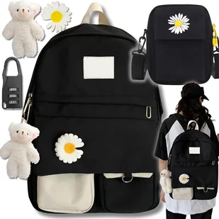 Plecak Szkolny Młodzieżowy Listonoszka+brelok+kwiatek Tornister Modny Miś
