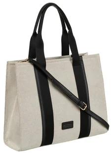 Płócienna shopperka damska do ręki lub na ramię beżowo - czarna PETERSON duża torebka miejska na suwak mieści A4 kieszonki na drobiazgi w komplecie ..