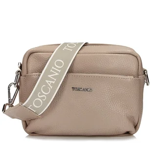 Torebka wykonana z naturalnej, groszkowej skóry, wyposażona w jedną główną komorę zawierającą wewnątrz jedną mniejszą kieszonkę oraz dwie dodatkowe na zewnąt...