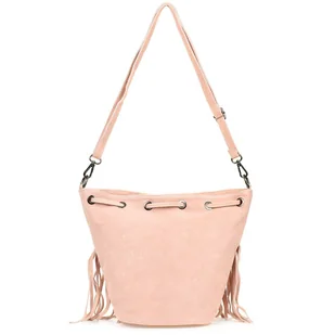 Pudrowy róż Damska Torebka Worek Skóra Zamsz Frędzle Włoska X39