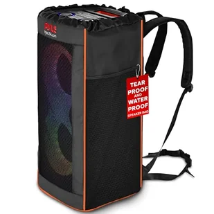 Pyle Przenośna wodoodporna torba głośnikowa, odporna na rozdarcie torba podróżna z regulowanymi paskami plecaka, bocznymi kieszeniami do przechowywania i sznurkiem na górze, kompatybilna z głośnikiem