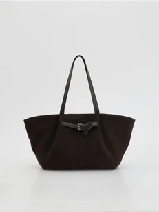 Reserved - Torebka shopper z imitacji zamszu - ciemnobrązowy