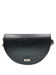 Gustowna czarna mała listonoszka w najmodniejszym fasonie w kształcie półksiężyca. Popularny model wśród kobiet w każdym wieku. Usztywniona jednokomorowa a klapa zapinana na magnes. Wykonana ze skóry naturalnej z imitacją skóry krokodyla. Listonoszka posiada metalowe srebrne okucia oraz regulowany pasek.