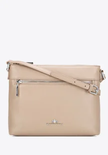 Kluczowe cechy: Materiał: Naturalna skóra o fakturze groszkowej – elegancka, trwała i odporna na codzienne użytkowanie. Funkcjonalne wnętrze: Dwie kieszenie, w tym jedna na zamek, pomagają utrzymać porządek i bezpiecznie przechowywać drobiazgi. Detale: Logo producenta na przodzie podkreśla elegancki charakter torebki.