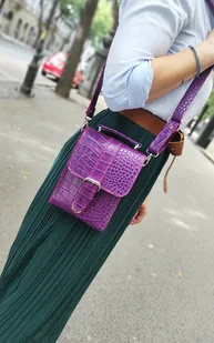 Skórzana torebka etui na telefon fioletowa - Pheobe