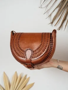 Skórzana torebka góralska ręcznie robiona Nicte wzory zakopane