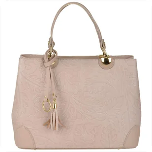 Skórzana torebka shopper róż pudrowy tłoczone kwiaty Indeks: 3158 Proponujemy Paniom torebkę shopper-kuferek skórzaną w bardzo ciekawym kolorze różu pudrowego wykonaną ze starannie wyselekcjonowanych skór włoskich, nowoczesne wzornictwo. Jest to bardzo ciekawy model w tłoczone liście na skóze. Opisywana torebka z pewnością będzie idealnym dodatkiem do wielu różnych stylizacji dnia codziennego. Cechuje się perfekcja wykonania i swoistym pięknem.