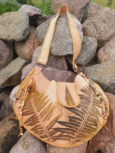 Bajkowa torebka, ręcznie wykonana ze skóry naturalnej wysokiej jakości, obuwniczej, impregnowanej (nieprzemakalnej) Szyta rzemieniem. Na łączeniach wzmacniana jest metalowymi nitami. Wnętrze z surow ...