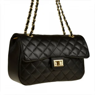 Śliczna czarna skórzana torebka pikowana rozmiar L Indeks: 1200 Proponujemy Paniom torebkę skórzaną listonoszkę, wizytową pikowaną chanelkę wyprodukowaną we Włoszech w rozmiarze L, skóra cielęca najwyższej jakości, w kolorze czarnym, bardzo elegancką i zmysłową. Torebka posiada zgrabny wygląd jest bardzo lekka i wygodna. Pasuje do wielu różnych stylizacji i wyróżnia się doskonałą jakością wykonania z dopracowaniem najdrobniejszych detali. Prezentowana listonoszka świetnie pasuje do eleganckiej sukienki na wieczorne wyjścia i nie tylko.