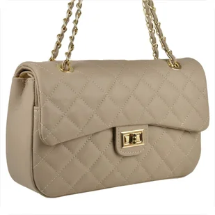 Śliczna skórzana torebka pikowana beżowa Indeks: 2353 Proponujemy Paniom torebkę skórzaną listonoszkę, wizytową pikowaną chanelkę wyprodukowaną we Włoszech w rozmiarze L, skóra cielęca najwyższej jakości, w kolorze beżowym, bardzo elegancką i zmysłową. Torebka posiada zgrabny wygląd jest bardzo lekka i wygodna. Pasuje do wielu różnych stylizacji i wyróżnia się doskonałą jakością wykonania z dopracowaniem najdrobniejszych detali. Prezentowana listonoszka świetnie pasuje do eleganckiej sukienki na wieczorne wyjścia i nie tylko.