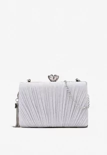 Srebrna Brokatowa Torebka Kopertowa z Retro Zatrzaskiem i Łańcuszkiem Vardia