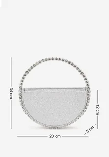 Srebrna Okrągła Torebka Koktajlowa Ozdobiona Cyrkoniami i Brokatem Fesimala