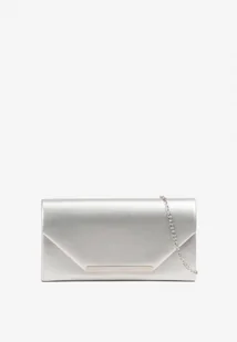 Srebrna Torebka Wieczorowa Kopertówka z Odczepianym Łańcuszkiem Rinnielle