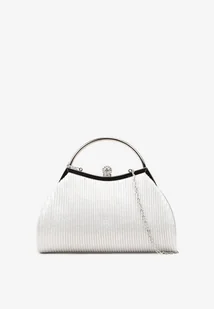 Srebrna Wieczorowa Torebka Vices o Trapezowym Kształcie z Rączką i Łańcuszkiem Accone