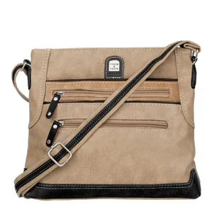 Torba damska wykonana ze miękkiej skóry ekologicznej wysokiej jakości. syntetyczna skóra starannie uszyta z dużą dbałością o detale komora główna zamykana na suwak przegroda w komorze głównej zamykana na suwak kieszeń w komorze głównej zamykana na suwak kieszeń w przegrodzie dwie otwarte kieszenie w komorze głównej dwie zamykane na suwak przednie kieszenie dwie zamykane na rzep przednie kieszenie zamykana na suwak tylna kieszeń miła w dotyku wewnętrzna podszewka okucia w srebrnym kolorze pasek na ramię z regulacją długości