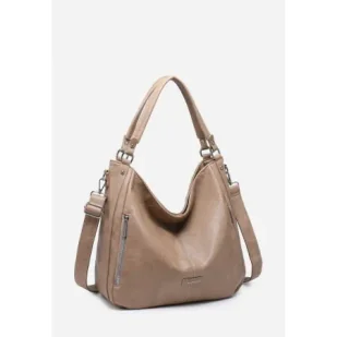 Torebka damska LUIGISANTO V8004-5 Beige/TaupeTorebka Damska Lugisanto - Elegancja i Praktyczność w JednymOdkryj wyjątkową torebkę damską Lugisanto V8004-5, która łączy w sobie nowoczesny design i funkcjonalność, zapewniając doskonałe rozwiązanie na każdą okazję. Wykonana z wysokiej jakości skóry ekologicznej, torebka łączy elegancję z codzienną praktycznością, dostosowując się do Twojego stylu życia.Przemyślane WnętrzeGłówna komora torebki jest zamykana na solidny suwak, co zapewnia bezpieczeństwo przechowywanych rzeczy. Wnętrze zostało starannie zaprojektowane, aby maksymalnie ułatwić organizację - znajdziesz tu przegrodę na suwak, idealną na cenne przedmioty, oraz dodatkową kieszonkę na suwak, która pomoże Ci przechować mniejsze akcesoria. Dodatkowo, dwie małe wsuwane kieszonki umożliwiają szybki dostęp do telefonu i drobiazgów, które musisz mieć zawsze pod ręką.Stylowe Detale i Funkcjonalne RozwiązaniaZ przodu torebki znajdują się dwie pionowe kieszonki na suwak, które są doskonałym miejscem na przedmioty, do których chcesz mieć łatwy dostęp. Z tyłu torebki umieszczono kieszonkę na suwak, która ułatwia przechowywanie kluczy czy portfela, zapewniając szybki dostęp do najważniejszych przedmiotów.Elegancja i KomfortTorebka Lugisanto wyróżnia się usztywnianym dnem, które utrzymuje jej kształt i zapewnia stabilność, dzięki czemu torba zawsze prezentuje się nienagannie. Okucia w kolorze srebrnym dodają jej nowoczesnego charakteru, a dopinany, długi, regulowany pasek umożliwia wygodne noszenie torebki zarówno na ramieniu, jak i przez ramię, dostosowując się do Twoich potrzeb.Wielkość i PraktycznośćChoć torebka mieści format A4, jej kompaktowe wymiary sprawiają, że jest idealnym wyborem na codzienne wyjścia, oferując jednocześnie przestrzeń, którą możesz wykorzystać według własnych potrzeb.Torebka damska Lugisanto to doskonały wybór dla kobiet ceniących elegancję, praktyczność i nowoczesny design w jednym.Specyfikacja torebki:
