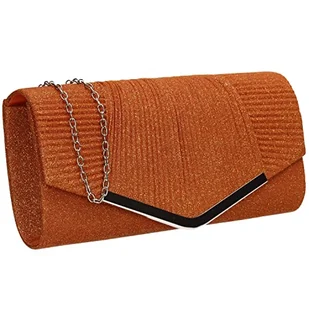 SwankySwans Emma damska błyszcząca błyszcząca impreza studniówka ślub wieczór kopertówka torebka, pomarańczowy