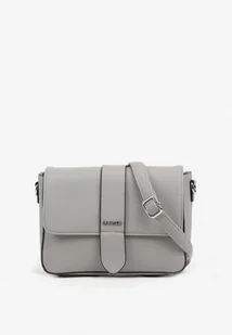 Szara Mała Torebka Listonoszka z Klapą i Metaliczną Aplikacją Nireine