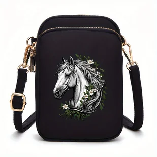 TEMU 1 szt. Stylowa Torba na Ramię z Nadrukiem Galopującego Konia dla Kobiet - Kompaktowa Torebka na Telefon z Poliestru z Zamknięciem na Zamek i