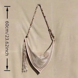 TEMU 2025 Bohemska Etniczna Torba Nylonowa dla Kobiet - Duża Pojemność, Otwarty Wierzch z Frędzlami i Kwiatowymi Ozdobami, Biała Torba Boho Chic na