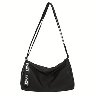 TEMU Czarna Nylonowa Torba na Ramię z Regulowanym Paskiem - Duża Pojemność, Lekka i Składana na Podróże, Sport i Użytek w Siłowni - Trwałe Zamknięcie
