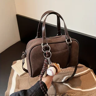 TEMU Premiumowa Vintage Torba Damska na Ramię, Wyselekcjonowana Matowa Tkanina Miękka i Delikatna, Gładka w Dotyku, Akcent z Kulką do Kręgli, Gładki