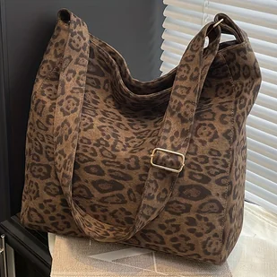 TEMU Damska Torba Bucket z Wzorem Lamparcim o Dużej Pojemności - Regulowana Torba na Ramię/Crośbody, Retro Głębokie Zamknięcie na Zamek, Trwała do