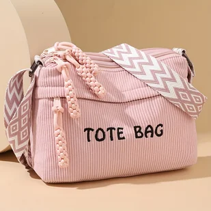 TEMU Damska Torba Tote z Sztruksu z Regulowanym Paskiem na Ramię/Przez Ramię, Duża Pojemność, Wielokieszeniowa Torebka na Codzienny Dojazd, Podróże,