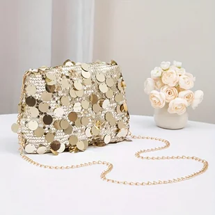 TEMU Elegancka Złota Cekinowa Torba na Ramię dla Kobiet z Odczepianym Łańcuszkiem - Błyszcząca PVC Torebka na Codzienny Dojazd, Imprezy i Specjalne