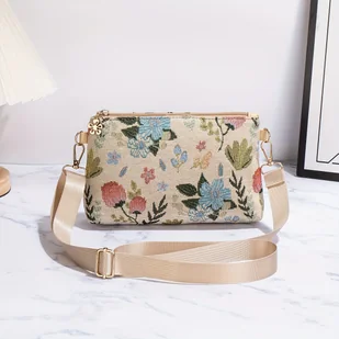 TEMU Prosta i Stylowa Damska Torba na Ramię, Haftowana Torebka na Ramię, Nowy Portfel w Kwiatowy Wzór