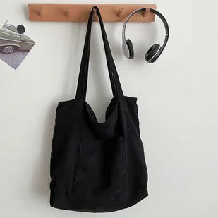 TEMU Sztruksowa torba zapinana na zamek, modna damska torba na ramię o dużej pojemności, codzienna torba na zakupy