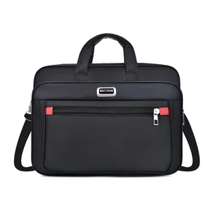 TEMU Torba Aktówka Nylonowa o Dużej Pojemności z Wielowarstwową Konstrukcją - Wytrzymała, z Czerwonym Akcentem, Zapięcie na Zamek Błyskawiczny,