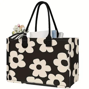 TEMU Torba Tote z Białym Kwiatowym Wzorem - Lekka, Duża Pojemność, Zamykana na Zamek, Idealna do Podróży, Fitnessu i Zakupów