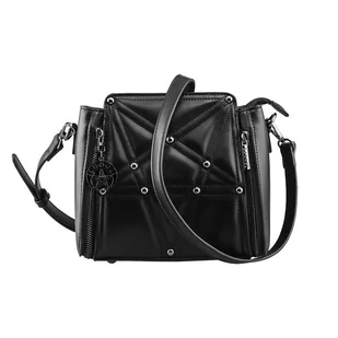 Czarna torebka firmy BANNED. Dwukomorowa, zapinana na suwak. W środku torby kieszeń zapinana na suwak. Regulowany pasek na ramię. Materiał: 100% PU. Wymiary:...