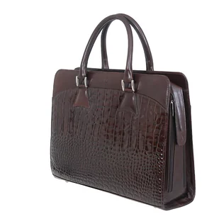Elegancka torba damska biznesowa, stworzona z naturalnej skóry najwyższej jakości z tłoczeniem krokodyla, to doskonały wybór dla kobiet ceniących sobie styl i elegancję w każdej sytuacji. Dzięki przemyślanej konstrukcji, torba oferuje jedną dużą komorę oraz sztywną przegrodę, która pomieści laptop o maksymalnych wymiarach 38 x 26 cm. Zastosowany system zabezpieczenia, w postaci patki z zatrzaską, chroni urządzenie przed przypadkowym wysunięciem, co czyni tę torbę idealnym towarzyszem w codziennej pracy. Wnętrze torby zaprojektowane zostało z myślą o maksymalnej funkcjonalności. Wyposażona jest w cztery kieszenie oraz trzy uchwyty na długopisy, co pozwala na utrzymanie porządku i szybką organizację niezbędnych akcesoriów.