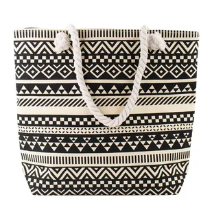 TORBA damska duża PLAŻOWA koszyk shopper LATO na ramię pojemna AZTEK Przygotuj się na letnie przygody z tą niezwykle pojemną i stylową torbą plażową typu shopper marki Alessio. Model ten wyróżnia się modnym, wielokolorowym wzorem w stylu azteckim (kolor przedmiotu: czarno-kremowy), który idealnie wpisuje się w wakacyjny klimat. To doskonały wybór nie tylko na plażę, ale również na zakupy, piknik czy jako bagaż podręczny do samolotu. Torba została wykonana z wytrzymałej tkaniny oraz tworzywa sztucznego, co zapewnia jej trwałość i odporność na uszkodzenia. Jej imponujące wymiary (44,5 cm szerokości, 38 cm wysokości) sprawiają, że bez problemu mieści format A4 oraz wszystkie niezbędne akcesoria, takie jak ręcznik, koc czy prowiant.